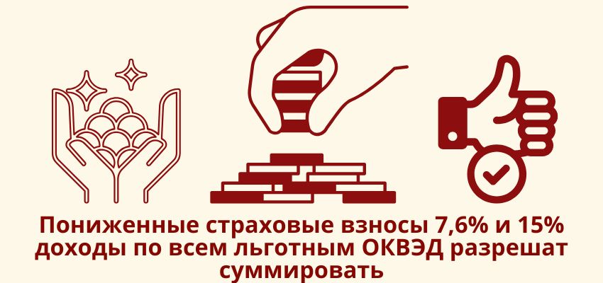 Пониженные страховые взносы 7,6% и 15%: доходы по всем льготным ОКВЭД разрешат суммировать