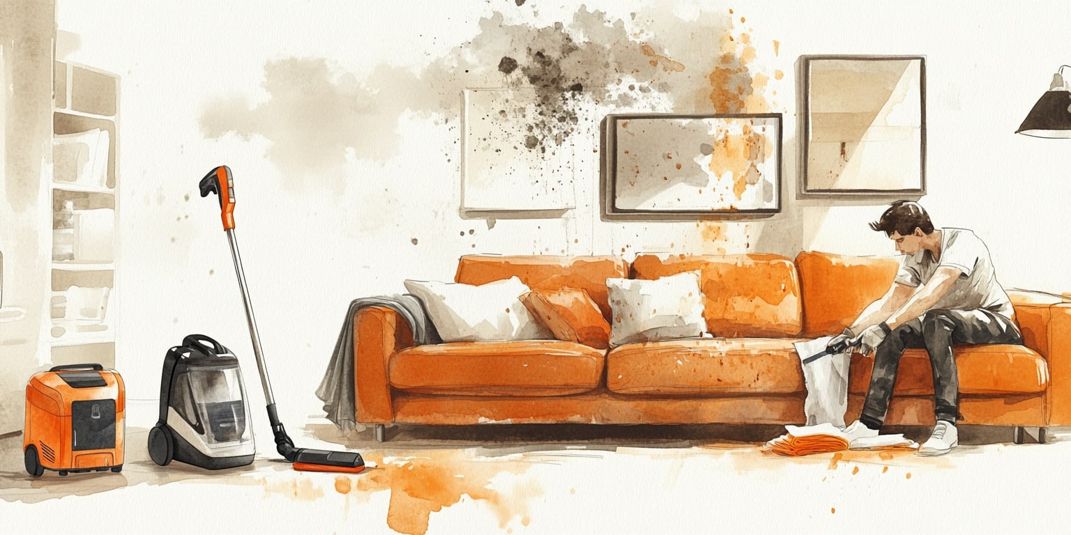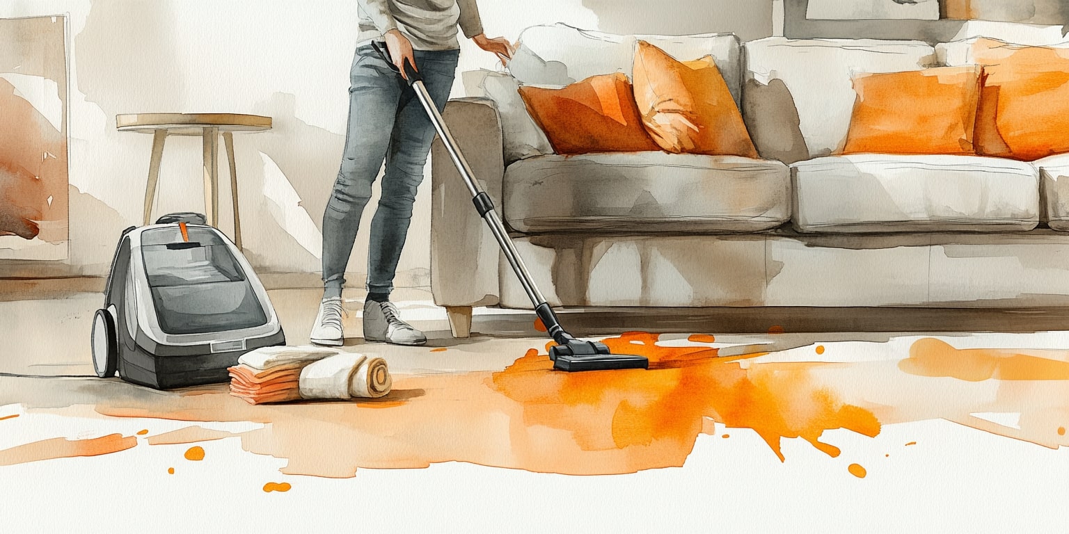 - Перед нанесением специальной бытовой химии тщательно очистите поверхность от грязи и пыли с помощью пылесоса.