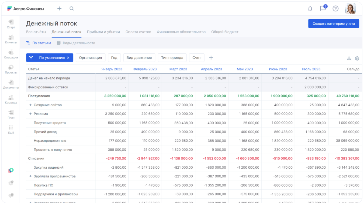 Отчет ДДС в Аспро.Финансы